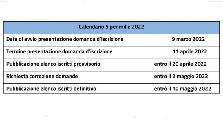 Entro il 20 aprile gli elenchi provvisori, appuntamento al 10 maggio per i definitivi – Gli elenchi provvisori degli enti iscritti saranno pubblicati dall’Agenzia delle entrate (per le Onlus) e dal Coni (per le associazioni sportive dilettantistiche) entro il 20 aprile 2022. Le correzioni
