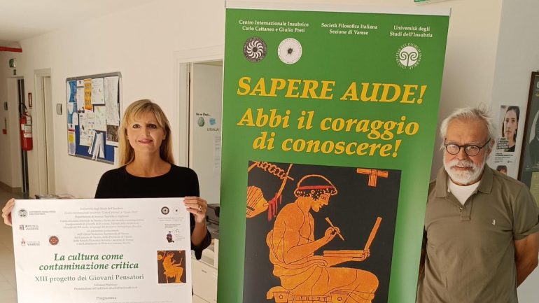 Duecento studenti in presenza e altrettanti a distanza e anche il Festival della filosofia dei Giovani pensatori si presenta in modalità ibrida. Il progetto dell’Università degli Studi dell’Insubria, ideato da Fabio Minazzi e coordinato da Stefania Barile, è giunto alla chiusura della sua XIII edizione con la riflessione sul tema «La cultura come contaminazione ed intreccio critico». Due le giornate in calendario: martedì 24 maggio dalle ore 9 alle 13 per i Giovani Pensatori delle scuole secondarie nell’Aula Magna di via Ravasi 2 a Varese, con la possibilità di seguire anche a distanza su piattaforma Microsoft Teams, e venerdì 27 maggio dalle ore 10 alle 12 per i Giovanissimi Pensatori solo in modalità live event online.