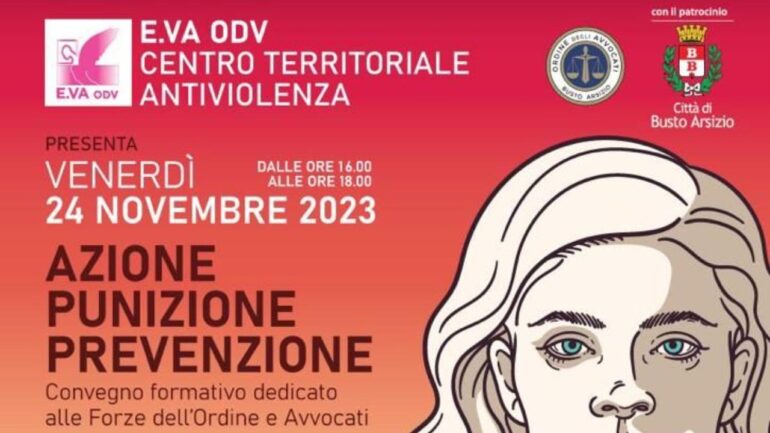 Si chiude venerdì 24 novembre con il convegno pubblico “Azione, Punizione e Prevenzione” il corso di formazione che il centro antiviolenza E.VA ODV ha dedicato alle forze dell’ordine. L’iniziativa, in programma in Sala Tramogge ai Molini Marzoli di Busto Arsizio (VA), apre di fatto una serie di occasioni di riflessione e sensibilizzazione in occasione della Giornata Internazionale per l’Eliminazione della Violenza sulle Donne.