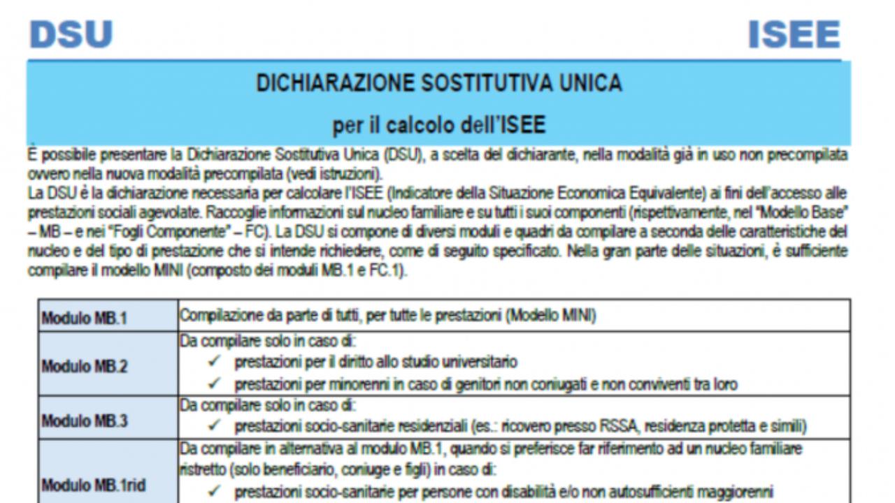 DSU Dichiarazione Unica Sostitutiva
