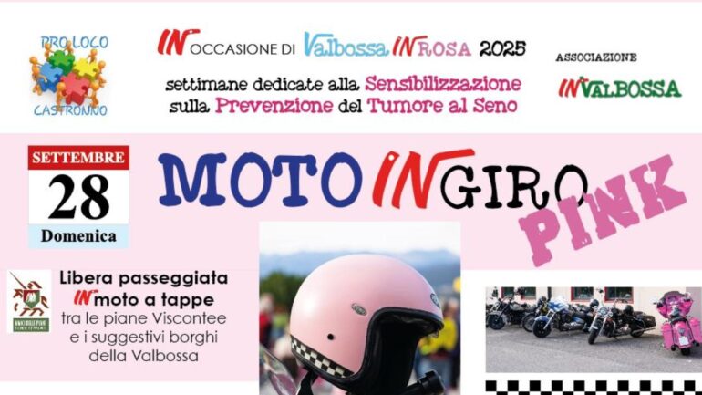 Si scaldano i motori per un evento benefico di raccolta fondi per la lotta e la prevenzione del tumore al seno. Domenica 28 settembre la Valbossa si tinge di rosa per “Moto in Rosa Pink”, il giro in moto a tappe tra le piane viscontee e i suggestivi borghi del territorio, organizzata con finalità benefica a sostegno della ricerca e della prevenzione del tumore al seno. L’evento rientra nel calendario di Valbossa in Rosa, associazione impegnata da anni nella sensibilizzazione sulla salute femminile e sostenuta dalla Bcc di Busto Garolfo e Buguggiate.