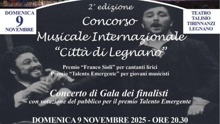 Il sipario del Teatro Città di Legnano Talisio Tirinnanzi sta per alzarsi sul gran finale del Concorso Musicale Internazionale “Città di Legnano – Premio Franco Sioli”, rassegna dedicata alla memoria del grande baritono legnanese e pensata per offrire un trampolino di lancio ai migliori talenti della musica lirica e strumentale. Domenica 9 novembre 2025, alle 20.30, il pubblico potrà assistere al Concerto di Gala che incoronerà i vincitori della seconda edizione, con una formula capace di unire alta formazione musicale, opportunità concrete di debutto e un coinvolgimento attivo degli spettatori: saranno infatti anche gli stessi presenti in sala a votare il “Talento Emergente”.