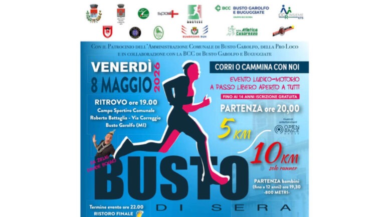 Il nuovo tracciato da 10 chilometri sarà riservato ai runner, mentre resta confermato il percorso da 5 chilometri, pensato per famiglie e camminatori. La partenza avverrà dalla pista di atletica per poi attraversare gran parte del territorio bustese, in un percorso che negli anni è diventato simbolo di aggregazione e scoperta del paese. L’arrivo sarà gestito dal gruppo Alpini, presenza storica e punto di riferimento anche per l’area ristoro e la griglieria finale, uno dei momenti più attesi della serata insieme all’area food e all’intrattenimento musicale gestito da radio Open Space e vedrà la partecipazione straordinaria di Davide Bogno da Zelig.