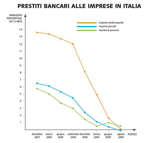 Se la matematica non è un’opinione, qui i conti non tornano. E se parliamo di banche tradizionali, che dei bilanci fanno la loro stella polare, siamo proprio fuori rotta. Cosa sta succedendo nel mondo bancario? L’anomalia portata dalla crisi ha sconvolto a tal punto la finanza e l’economia che le leggi valide sino a qualche tempo fa adesso si godono la pensione? A chiederselo è il direttore generale della Bcc di Busto Garolfo e Buguggiate, Luca Barni, sulla cui scrivania arrivano ultimamente troppe informazioni contrastanti: «Leggo le tavole riportate dal bollettino della Banca d’Italia, fonte la cui autorevolezza sfido chiunque a mettere in discussione, e mi faccio una convinzione ben precisa: oggi, in questo preciso momento, novembre 2009, le banche tradizionali non possono guadagnare. I numeri parlano chiaro: dimostrano quello che nel nostro lavoro sperimentiamo tutti i giorni. La crisi, adesso, da finanziaria che era all’origine, si è interamente riversata sull’economia reale, facendo avvertire tutte le conseguenze che temevamo, sulle piccole imprese e sull’occupazione in primis». L’andamento dei dati sui prestiti bancari pubblicati dal bollettino citato (58/2009) non si prestano d’altronde a equivoci di sorta. Dal dicembre 2007 all’agosto 2009 gli affidamenti alle imprese vanno in picchiata. Per tutte le tipologie d’imprese: le medio-grandi passano nelle variazioni percentuali sui dodici mesi dal 13,6% allo 0,1%; le piccole dal 6,4% al meno 0,1%; le familiari da 5,8 a 0,5%.