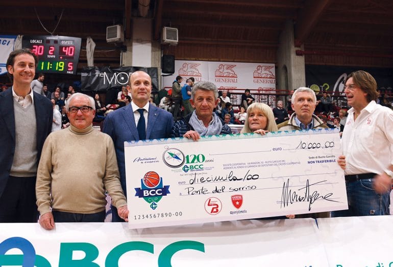 L’esordio è stato in pieno stile BCC. Quando la nostra banca va sotto canestro lo fa unendo sport e territorio nel nome della solidarietà. Con la BCC Cup tutti questi ingredienti si sono sapientemente mescolati concretizzandosi in una serata di grande agonismo e di grande cuore. Per la prima edizione della BCC Cup, martedì 21 febbraio al PalaBorsani di Castellanza si sono sfidate in un’amichevole di lusso due tra le più importanti realtà cestistiche italiane, sicuramente le due maggiori formazioni dell’Altomilanese e del Varesotto: la Pallacanestro Openjobmetis Varese che milita nella massima serie nazionale e il Legnano Basket Knights che gioca in Lega 2. Sotto il marchio Bcc hanno unito le forze per un fine comune: aiutare Il Ponte del Sorriso, fondazione varesina impegnata da oltre venti anni nella cura e nell’accoglienza dei bambini in ospedale. E il risultato è arrivato: l’incasso della partita è stato raddoppiato dalla nostra banca e alla fondazione sono stati donati 10mila euro. «La BCC Cup è nata con il preciso scopo di trasformare la passione per la pallacanestro in un gesto concreto di solidarietà per il territorio», ricorda il presidente della nostra Bcc Roberto Scazzosi. «Nel pensare ad un trofeo che potesse racchiudere in sé questi valori, abbiamo trovato la pronta risposta e la fattiva collaborazione delle due società del territorio che esprimono la pallacanestro ad altissimi livelli: Varese e Legnano.