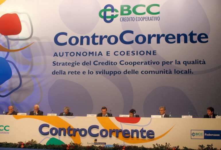 Il 13esimo convegno nazionale del Credito Cooperativo, svoltosi a Parma dal 9 all’11 dicembre 2005, sarà ricordato come il primo passo verso lo slancio della “rete” delle Bcc all’interno del Sistema Italia. “Controcorrente. Autonomia e coesione. Strategie del Credito Cooperativo per la qualità della rete e lo sviluppo delle comunità locali”: questo il titolo della tre giorni tenutasi al Palacassa della città emiliana, che ha visto quasi duemila partecipanti in rappresentanza delle Bcc-Cr e due personaggi della politica italiana di prestigio: Pier Ferdinando Casini (presidente della Camera) e Romano Prodi, leader dell’Unione. Dopo un dibattito preparatorio, che ha coinvolto la base del movimento del Credito Cooperativo, è stata adottata la proposta di migliorare la qualità della rete attraverso meccanismi che garantiscano l’autonomia delle singole Bcc e contemporaneamente una più forte coesione complessiva. «Fino a oggi – è stato il commento di Alessandro Azzi, presidente di Federcasse – abbiamo potuto definirci un sistema a rete tra virgolette. La proposta che presentiamo oggi costituisce un’evoluzione decisiva, un passaggio di grandissima portata sul piano culturale e su quello pratico». Il progetto di coesione è stato delineato da Franco Caleffi, direttore generale di Federcasse: «Il nuovo “Fondo istituzionale di protezione della clientela” rappresenta il fattore strategico che può far conseguire un significativo passo avanti all’interno del sistema del Credito Cooperativo». I tre elementi strategici che porteranno alla realizzazione del progetto sono stati indicati nell’outsourcing, nel marchio e nella formazione identitaria. Elementi contenuti nella “Carta della coesione”, approvata all’unanimità dall’assemblea, che è la naturale prosecuzione della “Carta dei valori” (adottata nel XII Convegno di Riva del Garda): «La carta – ha continuato Azzi – prende le mosse da una significativa premessa, che costituisce il ponte con la Carta dei valori, che è e rimarrà la piattaforma valoriale della comunità delle nostre Bcc». All’ultima giornata del convegno hanno partecipato Luigi Marino, presidente di Confcooperative, Savino Pezzotta, segretario generale della Cisl, Alessandro Profumo, amministratore delegato di Unicredit e Lamberto Dini, vicepresidente del Senato: «alle Bcc – ha detto Marino – spetta il compito di accompagnare le piccole e medie imprese del Paese verso il processo di integrazione, di crescita dimensionale e di internazionalizzazione.
