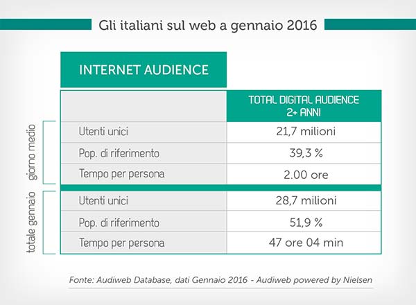 Nella sua veste digitale, la nostra Voce può mettersi al servizio dell’economia locale e della società civile, informando in modo diverso. Può portare a conoscenza di tantissime persone le cose buone, belle e giuste realizzate da tante realtà che a volte nemmeno sappiamo di avere intorno a noi». È con questo progetto che la Voce della Buona Notizia è arrivata sul web, all’indirizzo www.bcc-lavoce.it. C’è uno spazio che si aggiorna giorno per giorno, ed è quello, appunto, delle buone notizie, alle quali è riservata la sezione più in evidenza del sito e che si suddividono in due categorie: le buone notizie locali e quelle globali. Per buone notizie locali intendiamo, naturalmente, quelle che si verificano nel bacino territoriale sul quale insiste la nostra Bcc, corrispondente a parte dell’Altomilanese e del Varesotto. Vi trovano spazio, quindi, le notizie che arrivano dai Comuni, dalle associazioni, dal mondo del volontariato, della solidarietà, dello sport, della scuola e della cultura. «Queste realtà sono il vero e proprio tessuto connettivo dei nostri territori, preparano il terreno su cui vive e cresce la società civile –prosegue Scazzosi– Ma troppo spesso le diamo per scontate. Ci dimentichiamo della loro opera preziosa, o perché i giornali se ne occupano poco, o perché queste realtà non hanno la forza e le risorse per comunicare da sé. Con noi, da oggi, avranno una voce». Un occhio di riguardo sarà riservato all’economia locale, dando spazio alle imprese e alle loro storie di successo; dando conto delle opportunità, degli studi e dei numeri che raccontano come rispondono le nostre comunità alle sfide del presente. Stesso approccio per le notizie di categoria globale. Continuare ad alimentare un’idea dell’Italia, dell’Europa e del mondo orientata al declino e al caos non solo è parziale e non veritiero, ma è anche pericoloso. Non si pos sono tacere i problemi e le crisi, certo, ma è importante dare spazio a chi, questi problemi e queste crisi, lavora per affrontarli, propone modelli di successo, crea buone pratiche utili da prendere a esempio. Mettere in circolo questi stimoli è importante per capire quale strada prendere per il futuro. Ma il progetto della nuova Voce digitale non si esaurisce con le buone notizie. L’altro pilastro su cui si regge il progetto è continuare a fare il giornale della nostra Banca sfruttando tutte le potenzialità del web. L’informazione sul Credito Cooperativo di Busto Garolfo e Buguggiate si trova nella colonna a destra dell’homepage. È qui che troviamo la Voce che ci è familiare, con la sua copertina e il suo sommario. Solo che sarà più completa, più facile da consultare, più interattiva: con i rimandi interni sotto forma di link, con le gallery che possono raccogliere una varietà di immagini molto più ampia di quella che poteva trovare spazio nella versione cartacea, e anche con i video. La Voce diventa, così, più ricca e più tempestiva, anche se chi è affezionato al suo formato tradizionale non rimarrà comunque deluso: sul web ci sono gli sfogliabili, per una modalità di fruizione più vicina al cartaceo. E, per chi non può fare a meno di girare le pagine e sentire l’odore di tipografia, ci saranno sempre le copie di cortesia a disposizione nelle filiali. «È un grande cambiamento che però continua una nostra tradizione, quella di informare con completezza e incisività, andando incontro alle esigenze di chi ci legge –commenta il direttore generale della nostra Bcc Luca Barni–. Nel sondaggio di readership proposto qualche mese fa ai lettori della Voce, era emerso che avevamo una base di pubblico fedele. Tanto 95% degli interpellati riteneva che l’esistenza del nostro house organ fosse necessaria, e l’80% dichiarava di leggere il nostro giornale per intero o quasi. Ma il sondaggio rivelava anche una richiesta precisa: l’87% dei lettori si diceva interessato all’online, il 25% sarebbe stato addirittura disposto a una Voce esclusivamente digitale e un altro 25% guardava con favore all’integrazione fra carta e web. Sono numeri su cui non potevamo non ragionare, e che del resto riflettono perfettamente ciò che sta accadendo, in generale, per quanto riguarda la digital audience in Italia». I numeri a cui fa riferimento Luca Barni, e che sono riportati nelle infografiche in queste pagine, sono quelli rilasciati a marzo da Audiweb/Nielsen e relativi al mese di gennaio 2016. In base ai dati dell’Audiweb Database sulla fruizione di internet in Italia, nel mese di gennaio 2016 28.7 milioni di italiani, il 52% delle persone da due anni in su, si è collegato a internet (da PC o device mobili) per una media di 47 ore a persona. Il numero di persone collegate nel giorno medio è stato 21,7 milioni, che hanno navigato mediamente per due ore.