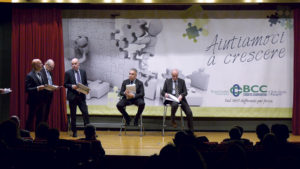 dell’ormai ex direttore generale Luca Barni era già stata data notizia nel corso dell’ultima assemblea di dicembre, anche per l’ex responsabile dell’Area mercato Massimo Tufano si sono aperte le porte di Iccrea. Quindi, il management ha visto accanto alla nomina del nuovo direttore generale Carlo Crugnola e del suo vice Roberto Solbiati, anche l’entrata nel comitato di direzione di Roberto Gentilomo, chiamato ad assumere la responsabilità dell’Area Mercato. «Le novità possono rivelarsi non una grande sfida», ha esordito il presidente della nostra Bcc, Roberto Scazzosi, nella prima parte della convention che si è tenuta il 4 marzo nell’auditorium Don Besana e che ha visto l’intervento di Germano Lanzoni, meglio conosciuto come il volto del Milanese Imbruttito. «Ribadisco l’importanza della scelta che abbiamo fatto: il Gruppo Bancario Cooperativo Iccrea è davvero la scelta migliore che potevamo fare per avere una banca sempre in grado di vincere le sfide che la contemporaneità ci richiede. In questo cambiamento ci troviamo con una classe dirigente che è cresciuta e che costituisce una squadra pronta ad affrontare ogni situazione. Una squadra che è figlia non solo di scelte che ci sono piovute addosso, ma di una precisa volontà di rinnovamento messa in atto dalla governance, prima decidendo di ridurre il numero dei membri del consiglio di amministrazione e poi procedendo al ringiovanimento dei suoi componenti.
