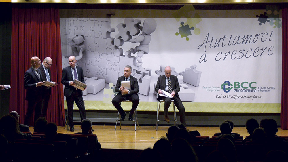 Terzo punto di forza: la nostra squadra. Fare gruppo significa diventare parte di un progetto che va oltre la singola persona, ma assume valore e maggiore forza solo se inserito in un contesto d’insieme ». Del resto la vision è ben chiara: «Svolgere al meglio il nostro ruolo di banca locale, mantenendo un rapporto saldo e florido col territorio e con le sue associazioni, i suoi enti e le sue comunità economiche e sociali», ha proseguito il vicedirettore generale Roberto Solbiati. «Pur essendo un’azienda e quindi avendo l’obbligo di guardare alla sostenibilità dei nostri bilanci, il nostro primo impegno è per il sostegno della crescita delle nostre comunità di riferimento. Come raggiungere tutto questo? Una sola parola: coinvolgimento. Ascoltare e dare risposte». E se squadra deve essere, sul palco del Don Besana sono stati chiamati i responsabili delle varie aree della nostra banca: Andrea Colombo per l’area Crediti, Alberto Pastori, per Organizzazione e sistemi, Roberto Gentilomo per l’area Mercato e Annibale Bernasconi per i Controlli. Non solo.