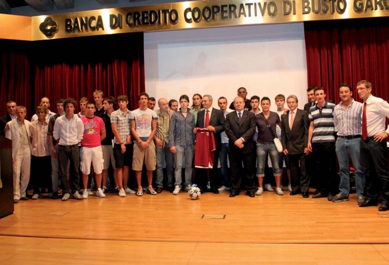 Ambiziosa. Prima di tutto per un fatto di cultura oltre che, naturalmente, di risultati. La nuova prima squadra della Bustese Calcio è stata presentata lunedì 20 luglio, nella sala Don Besana della nostra Bcc.Un luogo che ha confermato il rapporto di collaborazione tra la Banca e l’Unione sportiva Bustese. «Portate sulla maglia il nome di una grande multinazionale e quello della Bcc di Busto Garolfo e Buguggiate, una banca interprovinciale che si estende dall’Alto Milanese fin quasi al confine con la Svizzera», ha detto agli atleti il nostro presidente, Lidio Clementi, che è anche vicepresidente della Bustese Calcio e grande appassionato di sport. «Siete una squadra giovane che deve fare bene -ha continuato Clementi durante la cerimonia di presentazione-; i colori della Bustese non devono fare brutte figure.