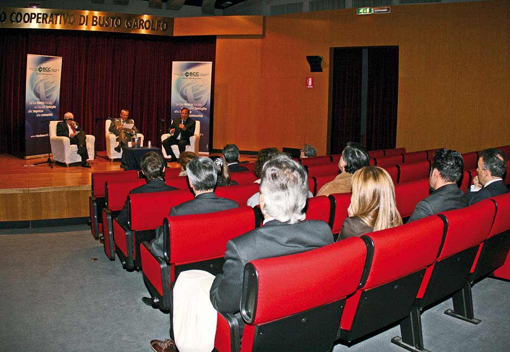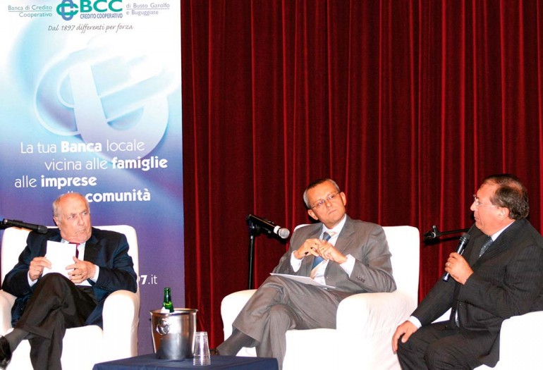 «Le difficoltà a comprendere l’evoluzione dell’agricoltura non furono esclusiva del presidente Grosso, bisognerebbe chiedersi: quale idea dell’industrializzazione si aveva negli anni Cinquanta? L’Italia è, oggi, un Paese costitutivamente industrializzato? È sufficiente disporre di una struttura industriale per dirsi tale o serve, come io credo, una forma mentis adeguata, una forma mentis che io, ancora oggi, non ravviso?» Dalla prospettiva storica, dai fenomeni di lungo corso, in questo caso, Gianni Borsa ha richiamato la conversazione alla più stretta attualità: «In quest’area l’economia è sempre stata concreta; cosa abbiamo da imparare in un momento che vede certa finanza sul banco degli imputati?». «L’economia reale e la finanza devono essere complementari, mai conflittuali; nel passato, nell’Altomilanese, si era registrato un caso di finanza spregiudicata -ricorda Cafaro-, quello della Banca di Busto Arsizio. Sotto la guida di Angelo Pogliani, l’istituto intraprese una politica espansiva che lo portò al collasso. Fu un caso isolato, ma esemplare per i rischi di una finanza speculativa, quella che basa la crescita sulla ricollocazione. La Cassa bustese, invece, ha sempre guardato alla concretezza». Nulla di nuovo sotto il sole comunque, se è vero come è vero che «già i genovesi, nel ‘600, provarono a fare denaro con il denaro, a dimostrazione della difficoltà, in alcune epoche, nel fare crescere l’economia reale e dando comunque l’illusione dello sviluppo», ha ricordato Zaninelli. A gettare il ponte con giorni più vicini ai nostri il discorso generazionale, quello che segna uno spartiacque nella storia dell’istituto e che marca la fine del primo volume di questa ricostruzione storica. «Con l’avvento di Morandi alla presidenza della Cassa cambia tutto – dice Cafaro-, prevalgono gli impieghi nel settore dell’artigianato e comincia la lunga fase di espansione sul territorio.