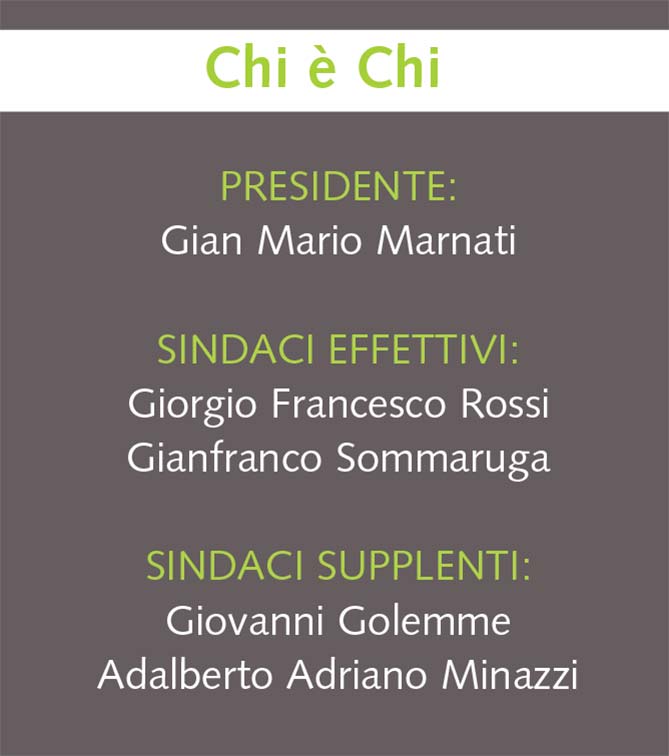 Senza controllo non si dà sviluppo; semplicemente indispensabile, quindi, la funzione del Collegio sindacale, l’organo rinnovato nel corso dell’assemblea tenutasi il 25 maggio, che per il prossimo triennio vedrà Gian Mario Marnati ricoprire la carica di presidente, Giorgio Francesco Rossi e Gianfranco Sommaruga nelle vesti di sindaci effettivi, Giovanni Golemme e Adalberto Adriano Minazzi nel ruolo di sindaci supplenti. Ma il punto è intendersi sui termini: oggi, nella funzione controllo, è
