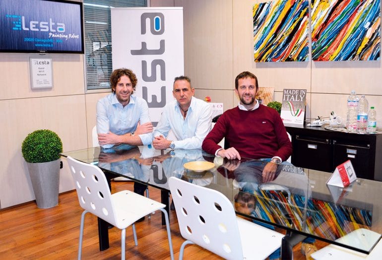 verniciatura robotica: l’inizio di un film? No, le origini della Lesta srl, un’azienda di progettazione, realizzazione e commercializzazione di robot industriali per la verniciatura, che è stata fondata nel 2010 da Emanuele Mazza, Marco Bresciani e Federico Comini in quel di Dairago. Racconta Emanuele: «Io e Marco venivamo da un momento difficile. L’azienda di automazione industriale per cui lavoravamo aveva appena chiuso i battenti in seguito a due importanti crisi finanziare (nel 2005 e nel 2009, ndr).