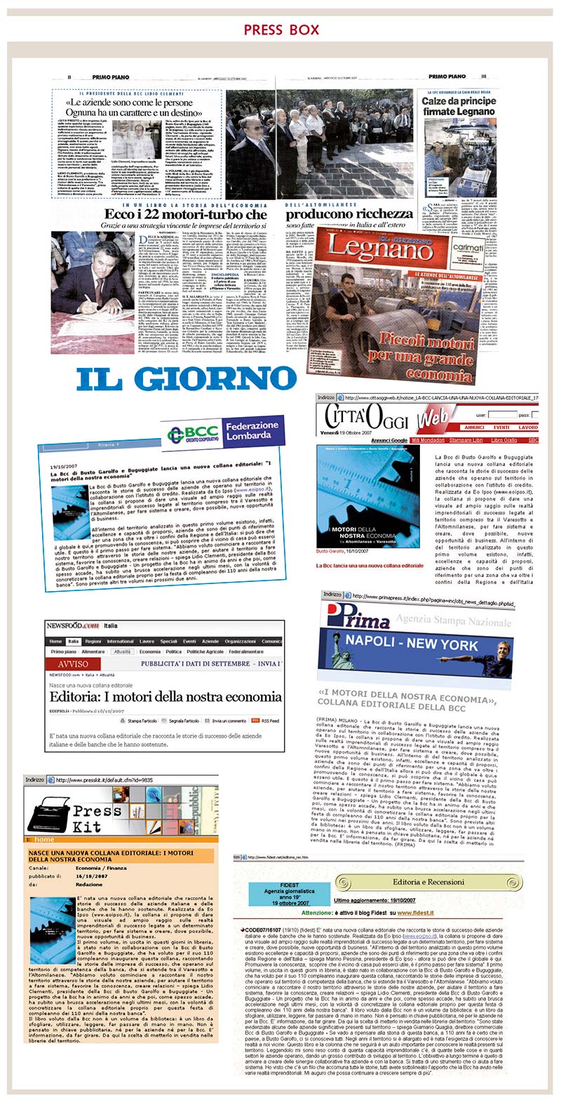 Dopo il successo della prima edizione, come annunciato nell’ottobre scorso in occasione del 110° compleanno della nostra Bcc e della nascita della collana, è ora in preparazione il secondo volume de «I motori della nostra economia. Tra Altomilanese e Varesotto». Si tratta di un’opera libraria, per la sua gran parte ancora tutta da scrivere, con cui la Banca di Credito Cooperativo di Busto Garolfo e Buguggiate ha iniziato a raccontare il suo territorio attraverso le storie delle aziende, dei professionisti e delle realtà associative che l’hanno fatto grande, e continuano a caratterizzarlo con il proprio lavoro e il proprio impegno quotidiano. «Abbiamo pensato ad una collana divulgativa, di facile lettura ma dai contenuti completi, e dal formato facile da far girare. Perché questo è l’obiettivo dell’opera: essere letta, passata di mano in mano, prima ancora che lasciata ad accumulare polvere sugli scaffali di una libreria –commenta il presidente della Bcc di Busto Garolfo e Buguggiate, Lidio Clementi- . Questo il motivo che ci ha portato a diffondere il volume nelle librerie del territorio e la ragione che ci spinge ad organizzare degli incontri sui protagonisti del nostro volume con gli studenti del territorio. Insomma: diffondere la conoscenza per favorire il crearsi di un sistema locale sempre più coeso e, soprattutto, cosciente delle proprie potenzialità». Discorsi da marketing territoriale, dunque, quelli che hanno spinto il Consiglio di amministrazione e la Direzione della nostra Bcc a sostenere la nascita e la diffusione dell’opera editoriale. 21Perché alla base della promozione di un territorio e, prima ancora, della sua crescita e del suo sviluppo, ci sta la conoscenza di sé, delle proprie potenzialità, delle peculiarità e, in chiave di sistema, delle produzioni complementari alle proprie e dell’esistenza -o meno- di fornitori, terzisti, partner. «Agli inizi degli anni Novanta, quando alla televisione passavano gli spot per lanciare l’uso di internet -commenta Lidio Clementi-, ce n’era uno che vedeva due aziende mettersi in contatto tramite la Rete, una perché cercava una rete commerciale, l’altra perché cercava un prodotto innovativo da rappresentare. Chiuso l’accordo via mail per diventare partner, lo spot mostrava i due amministratori delegati uscire all’esterno dei propri capannoni ad esultare. Per scoprirsi, rimanendo attoniti, dirimpettai. Ecco, io credo che sul nostro territorio, complice anche il fatto di essere posto a cavaliere tra due province, la situazione sia, in alcuni casi, proprio questa: non si sa bene quello che esiste, le eccellenze che vi operano. Non c’è una conoscenza di quello che il territorio ci può dare e, di ritorno, di quello che noi possiamo dare a lui. Con i nostri libri puntiamo a dare un contributo per cambiare le cose, per fare sistema. Che, poi, oltre all’accesso al credito, è l’altro, vero ruolo di una banca locale». Già, il ruolo della Bcc, emerso con chiarezza già dal primo volume, «nel quale si vede chiaramente che c’è un filo che accomuna tutte le storie dei motori della nostra economia -dice Gian Mario Quaglia, direttore commerciale della Bcc-: tutti, infatti, hanno sottolineato l’apporto che la nostra Banca ha avuto nelle varie realtà imprenditoriali. E la nostra idee è quella di fare sempre di più: l’obbiettivo a lungo termine che sta dietro alla nostra collana editoriale, infatti, è quello di arrivare a creare delle sinergie collaborative fra le aziende e con la banca”. «Tornando al libro -riprende Gianmario Quaglia-, sono anch’io curioso di vedere la seconda puntata, perché è un aiuto importante per conoscere le realtà presenti sul territorio. Leggendo il primo volume mi sono reso conto di quanta capacità imprenditoriale c’è, di quante belle cose e in quanti settori le aziende operano, dando un grosso contributo di sviluppo al territorio». Il secondo volume della collana sarà dato alle stampe prima dell’estate, per l’esattezza l’uscita è prevista per maggio, e, come è stato per il numero dell’ottobre scorso, sarà presentato nel corso di un convegno a cui saranno chiamati a prendere parte i rappresentanti delle realtà protagoniste del libro.