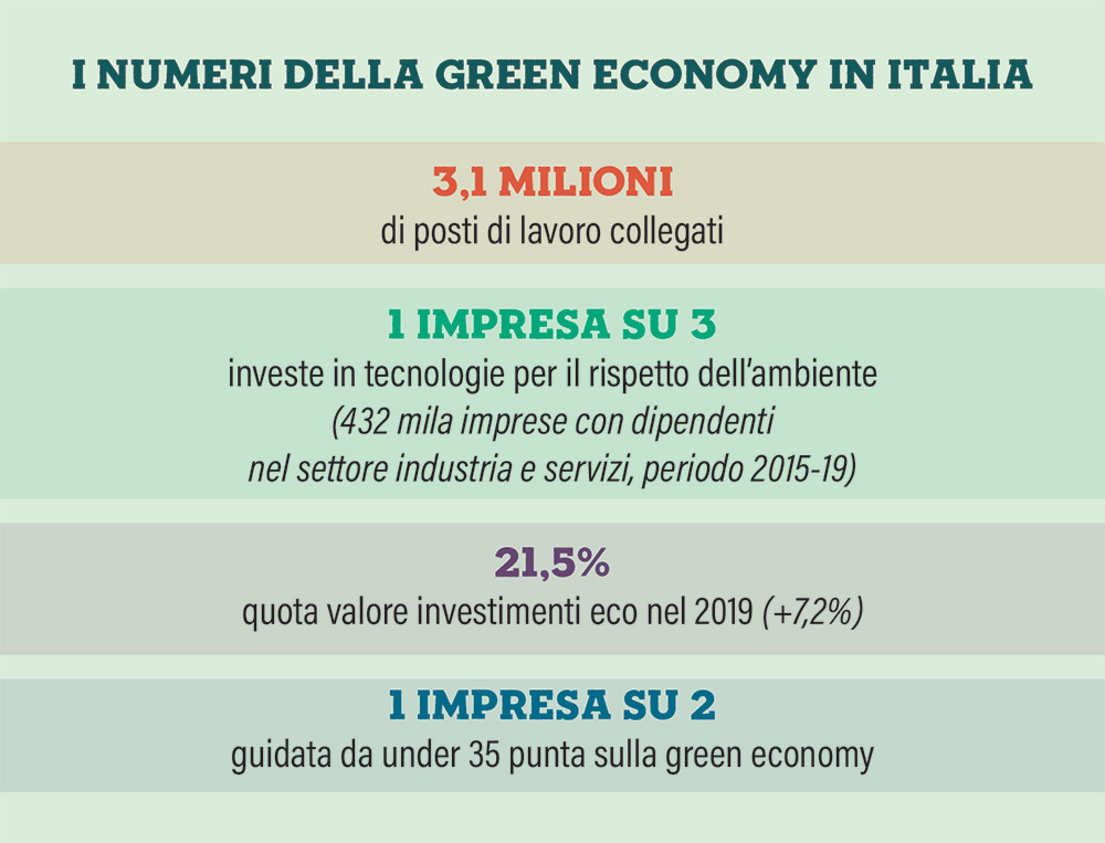 Il 2019 è stato l’anno record degli investimenti eco e i posti di lavoro legati alla sostenibilità hanno superato quota 3 milioni. I dati del rapporto GreenItaly