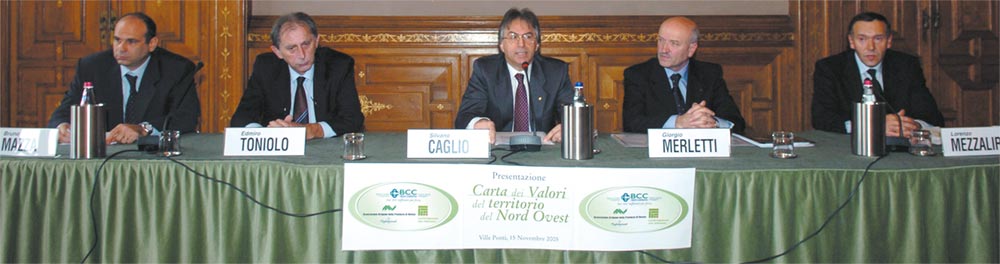 parlato. Protocolli di intesa ufficiali erano già stati firmati, iniziative congiunte lanciate e condotte in porto. Ma ora si va oltre. I tre attori sociali, che un anno fa hanno unito i marchi in nome della comune appartenenza ad una piattaforma territoriale, oggi hanno sottoscritto e lanciato la “Carta dei valori del Territorio del Nord Ovest”. Un documento importantissimo (di cui pubblichiamo l’intero testo nella pagina a fianco), che ha il valore di un patto con le comunità locali di riferimento: l’impegno è a rispettare le azioni e a mantenere gli impegni sanciti dalla Carta. «Questa Carta è frutto di oltre un anno e mezzo di lavoro e di confronto continuo sia all’interno dei tre gruppi fondatori sia in incontri con i principali attori della governance locale ed è l’approdo del cammino che con le due Confartigianato abbiamo lanciato nel febbraio 2004 per sostenere il rilancio e la crescita dell’economia e della coesione sociale del nostro Nord Ovest», spiega Silvano Caglio, presidente della nostra Bcc. «Con la Carta dei Valori abbiamo indicato i principi condivisi che rappresentano anche le motivazioni del nostro “stare insieme”. E da cui discendono i modelli di comportamento, sui quali cerchiamo la più ampia condivisione con chi, davvero, vuole operare per dare valore, slancio, competitività e futuro al nostro territorio», commenta Giorgio Merletti, presidente dell’Associazione Artigiani Provincia di Varese- Confartigianato. «Sentivamo il bisogno e la necessità di darci, e di offrire agli altri attori sociali e alle istituzioni, degli orientamenti concreti che potessero guidare le scelte della governance locale e che consentissero di gestire e dare continuità al nostro operare insieme per il territorio. La Carta dei Valori rappresenta una risposta chiara, univoca e “di valore” a questa esigenza », chiosa Edmiro Toniolo, presidente di Confartigianato Alto Milanese.