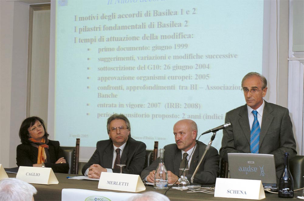 “Basilea 2: un’opportunità per il territorio”. Questo il titolo del percorso in due mosse organizzato in aprile dalla nostra Bcc e dalle Confartigianato Alto Milanese e della provincia di Varese, per approfondire le novità introdotte con gli accordi di Basilea 2 e tentare di individuare una soluzione comune alle esigenze degli artigiani e delle piccole e medie aziende del nostro territorio. Diciamo subito che la collaborazione con gli Artigiani e con i loro due Confidi è stata individuata come la strada maestra da seguire, attraverso un patto forte, che parte dalla “comune profonda conoscenza della realtà territoriale locale, che diventa segno distintivo di chi si mette davvero al servizio del territorio e opera per il suo rilancio, attraverso la crescita del sistema economico e sociale locale -come ha detto in conclusione di tutto Edmiro Toniolo, presidente della Confartigianato Alto Milanese-. In questa chiave, la collaborazione tra di noi e la Bcc diventa quindi la sola strada che la logica porta a seguire”. Ma torniamo a quanto fatto, ovvero al percorso organizzato su due mosse: un convegno pubblico, promosso in collaborazione con l’università dell’Insubria, che si è tenuto venerdì 8 aprile a Varese, al Collegio De Filippi; e un momento di approfondimento interno, aperto ai membri dei consigli di amministrazione della nostra banca, delle due Confartiganato e dei due Confidi, che si è svolto lunedì lunedì 18 aprile, a Busto Garolfo, nel salone don Besana.