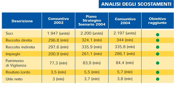 fissato gli obiettivi, avete adeguato le azioni ai risultati da ottenere e poi avete agito. Questa è la strada giusta, come dimostra anche la ragnatela di relazioni e di progetti che avete impostato sul vostro territorio di riferimento”. Innocenti ha prima di tutto ricordato gli obiettivi che la Bcc si era data e che sono riassumibili in otto punti. 1. sviluppo del Progetto Soci e ampliamento della compagine sociale; 2. gestione del personale e razionalizzazione organizzativa; 3. implementazione del sistema dei controlli interni; 4. migliorare l’efficienza e la produttività; 5. migliorare la redditività; 6. diminuzione rischio di credito; 7. crescita dimensionale; 8. ampliamento territoriale. Quindi, il tecnico della Federazione regionale delle Banche di Credito Cooperativo è passato ad illustrare i risultati raggiunti. Tutti centrati, come detto, e come visualizzato nelle tabelle della sua relazione, che abbiamo riportato in queste due pagine, perché tutti i soci possano giudicare sui fatti e non sulle parole.