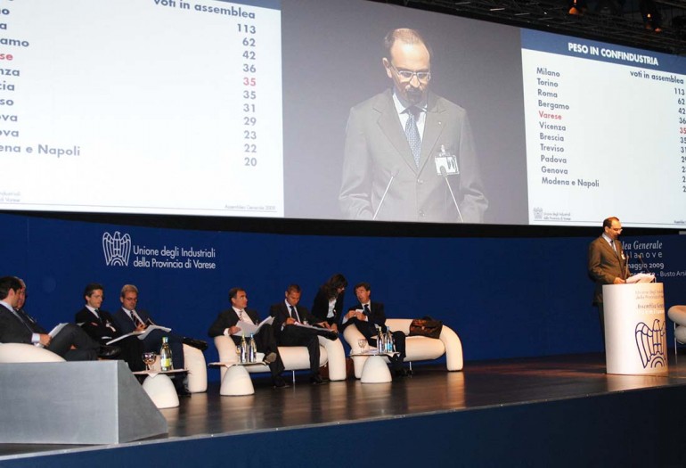 Quasi duecento delegati per una platea che ha sfiorato le mille presenze, tra le quali il presidente di Confindustria, Emma Marcegaglia, e il ministro dell’Interno, Roberto Maroni. È stata un’assemblea da record quella che l’Unione degli industriali della Provincia di Varese (Univa) ha celebrato lunedì 25 maggio a Busto Arsizio. A Malpensafiere sono arrivati anche il presidente della nostra Bcc, Lidio Clementi, il vice presidente, Roberto Scazzosi, e il direttore generale dell’istituto di credito, Luca Barni. Dopo il premio ricevuto come miglior sito internet delle “Grandi Associazioni” del Nord Italia del sistema e forte di essere la quinta per importanza nazionale tra le associazioni confindustriali, Univa ha lanciato il tema: “ripartire”. Ovvero, ripartire dalla crisi tornando a scommettere sull’economia reale. Il presidente di Univa, Michele Graglia, ha invitato infatti a «ripartire proprio da quegli elementi che spesso, negli anni passati, sono stati indicati come fattori di debolezza. La piccola dimensione delle imprese, la scarsa attenzione al mercato dei capitali e la presenza di modelli diversi in settori differenziati devono essere ripensate e trasformate in elementi attorno ai quali costruire nuovi punti di forza». Tornare quindi al «primato dell’industria, al valore fondamentale dell’impresa per ridare il giusto spazio ai valori del produrre, dell’investire, dell’innovare». Nel sottolineare l’importanza del “valore del fare”, è stato però il presidente di Confindustria a porre il tema del credito come «determinante». Ha detto Marcegaglia: «Le banche devono avere un grande senso di responsabilità, perché se non vinciamo la congiuntura attraverso un’alleanza forte tra banche e imprese, rischiano di sparire dal mercato aziende sane che pagano solo il momento di crisi». Quindi, sottolineando l’importanza del territorio, ha detto: «Chiediamo alle banche di esserci vicine».