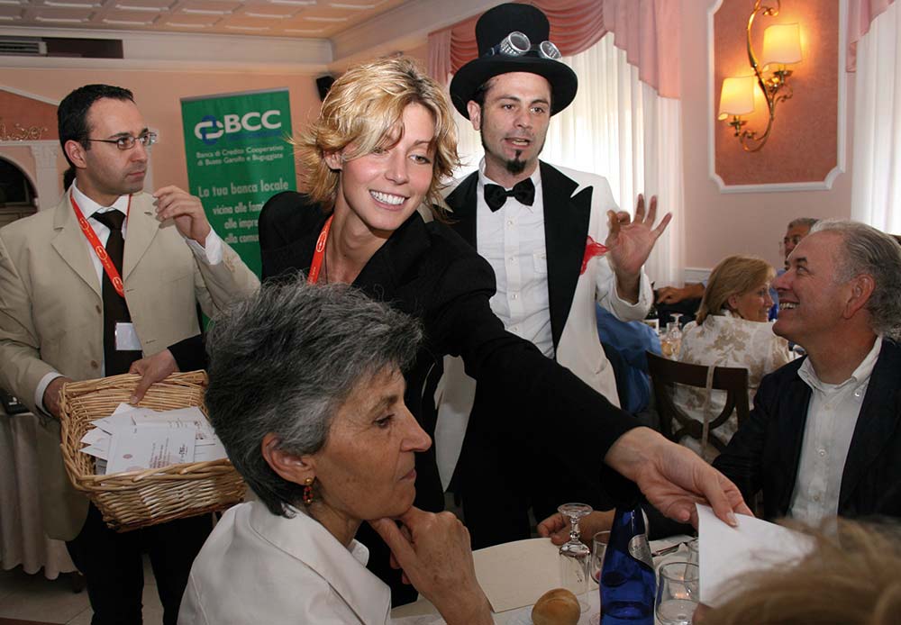 La bandiera a scacchi del progetto “Facciamolo insieme” ha sventolato idealmente al ristorante “Paradiso” di Cuvio, Varese, il 22 giugno. Il sole ha sorriso alle 150 persone che si sono ritrovate nella pace della provincia varesina, per dare una degna conclusione a un’iniziativa che ha mobilitato migliaia di persone sul nostro territorio. Le bolle giganti del mago Michele, leggere e svolazzanti, hanno accolto le persone al loro arrivo. E Sabrina, la caricaturista, si è data da fare tutto il pomeriggio per rallegrare gli astanti con i suoi disegni. Oltre al Consiglio di amministrazione della banca, c’erano Agostino Fedeli, presidente del Vispe, e don Luciano, che da oltre trent’anni vive giorno per giorno la realtà del Burundi. Assieme a loro, imprenditori locali, clienti -e spesso anche soci- della nostra Bcc, che hanno voluto testimoniare a questo momento. L’occasione è stata propizia per dare un ultimo contributo alla raccolta fondi. All’interno dei menù, infatti, è stata inserita una busta vuota, in cui inserire, a discrezione di ogni invitato, un contributo: in maniera discreta, anonima, e quindi sentita. Alla fine, la generosità e la sensibilità dei presenti si è concretizzata in un’ulteriore cospicua donazione: nella cesta, all’interno delle buste, c’erano 18.100 euro. Quando il nostro presidente, Lidio Clementi, ha annunciato il risultato, è partito spontaneo un applauso, a manifestare l’emozione per aver partecipato a qualcosa di importante.