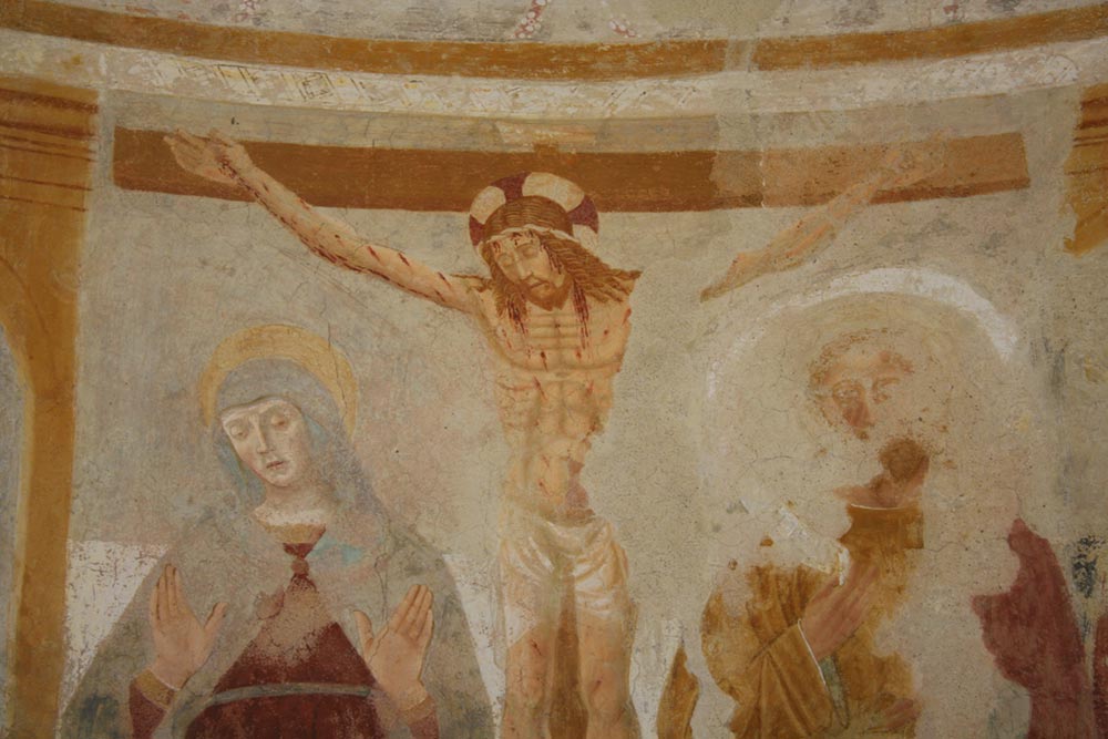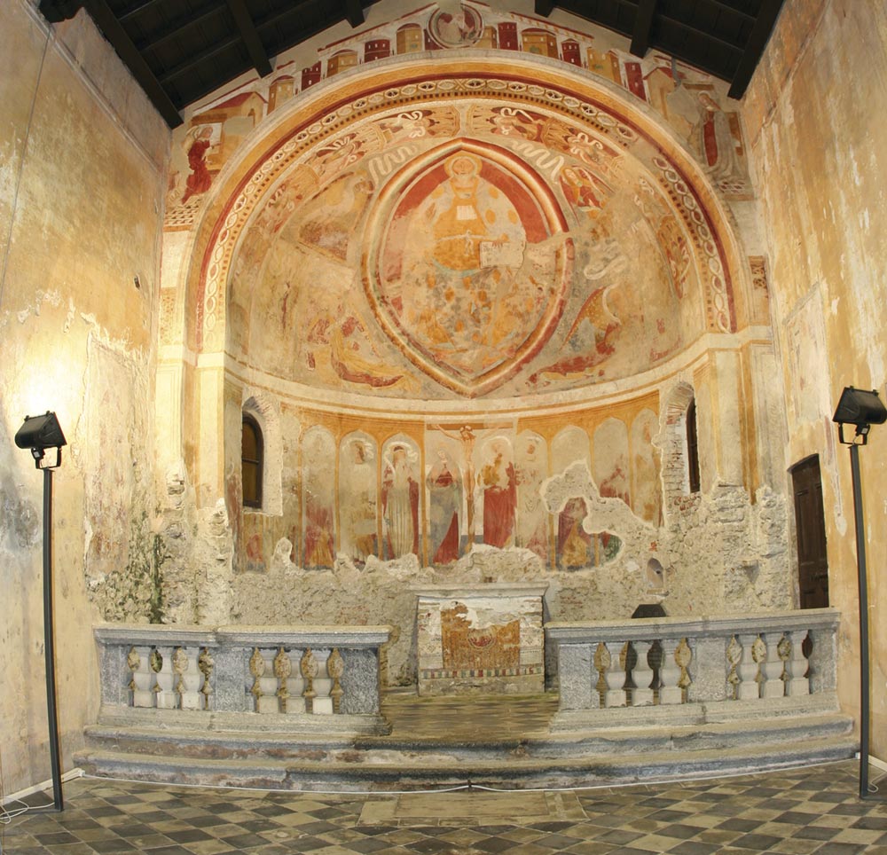 La zona in cui si riscontrano i danni più ingenti è sicuramente quella del cilindro dell’abside, dove la crocifissione e i dipinti circostanti presentano ampie lacune. Si tratta dell’area che maggiormente risente dell’umidità, assieme alla parte bassa in corrispondenza dello zoccolo, dove è visibile una parte di muratura scoperta. Le infiltrazioni di umidità arrivano dalla confinante scalinata del Mugello, che passa accanto all’edificio e che funziona come canale di scolo per l’acqua piovana che si raccoglie nella sovrastante zona di Villa Cagnola. Sulla parete che affianca la scalinata, infatti, sono presenti problemi di efflorescenza di sale, e gli effetti di questa “umidità di risalita” si sono allargati anche alla zona absidale affrescata, dove si nota un affievolimento dei colori, soprattutto nella parte inferiore. Già negli anni scorsi ha preso il via un’importante opera di restauro, che ha interessato il tetto e gli affreschi, ma ora c’è da mettere mano alla muratura, per evitare che questo piccolo capolavoro lombardo vada perduto. Per questo don Giuseppe Ornaghi si è rivolto in cerca di un sostegno economico alla nostra Banca. Per questo la Bcc ha risposto all’appello.