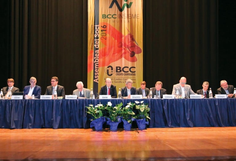 La relazione di Scazzosi ha preso le mosse dalla scenario del Paese, dove a fine 2015 i dati delle banche italiane hanno mostrato un rallentamento nella dinamica di crescita delle sofferenze. La raccolta bancaria, a causa della contrazione delle obbligazioni bancarie, non è cresciuta, il tasso medio sui nuovi prestiti alle imprese è diminuito sensibilmente nel corso dell’anno fino a raggiungere un livello storicamente molto contenuto, mentre il costo dei nuovi mutui alle famiglie è sceso di tre decimi, al 2,5 per cento e a dicembre 2015 tutti i tassi principali hanno segnato un livello inferiore rispetto a fine 2014. Guardando al movimento del Credito Cooperativo, alla fine del 2015 il numero delle BCC-CR era di 364. Il numero totale dei soci era pari a settembre 2015 a 1.233.803 unità, con un incremento del 2,9% su base d’anno. Gli impieghi lordi alla clientela delle BCC-CR a novembre 2015 erano pari a 134,9 miliardi di euro, con una crescita su base annua dello 0,8%. Passando al 2015 della nostra BCC, Scazzosi ne ha ricordato i fondamentali: la banca ha amministrato masse per 1 miliardo 470 milioni di euro, pari al +3,21% sul 2014, la raccolta indiretta è salita del 5,75%, quella diretta del 1,42%. I crediti verso la clientela si sono attestati a 654 milioni 869mila euro, con un +2,57% sulla fine del 2014. «Considerato che la banca si presenta all’avvio del 2016 con un consolidamento ulteriore delle sue grandezze patrimoniali ed economiche, ci sono le premesse per avere fiducia che il percorso di “condivisione” con il territorio sarà il futuro prossimo» – ha concluso Scazzosi.