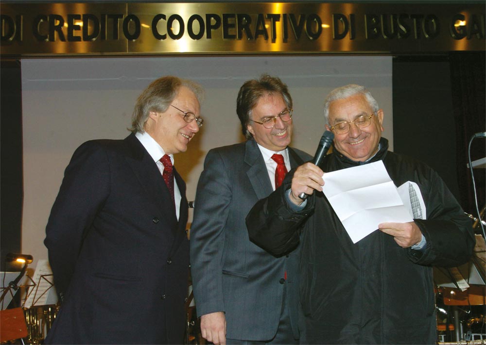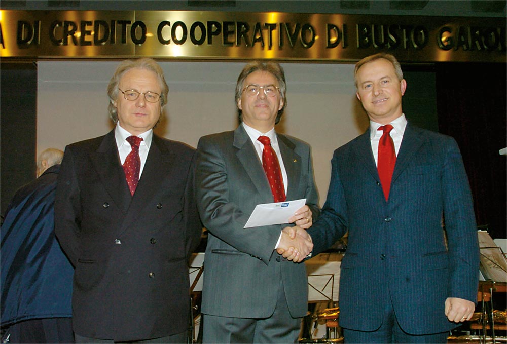 Grande successo per le tradizionali celebrazioni di fine anno della nostra Bcc, che si sono tenute a Busto Garolfo, nell’auditorium don Besana, durante l’intervallo del concerto della banda parrocchiale di Santa Cecilia. Una performance, quella del complesso bandistico, applauditissima da tutti e che proponeva le musiche di alcuni celebri film, accompagnate dalla proiezione di immagini delle pellicole cinematografiche. Tornando a noi, va detto che nel corso della serata sono stati festeggiati i 25 anni da socio del Cavaliere Mario Felice Buratti, che è stato acclamato anche dalla Teresa, dalla Mabilia e dal Giovanni, il celeberrimo trio dei Legnanesi, che è stato gradito ospite alla nostra festa. L’amore, il background comune, e la bontà della gente semplice, ma dal cuore grande, hanno anche per quest’anno legato la nostra banca alla più famosa compagnia dialettale italiana. E la bontà della scelta riproposta, per il secondo anno consecutivo, dal nostro consiglio di amministrazione, è stata confermata dal calore con cui i tre “Legnanesi” sono stati accolti sul palco. Nel corso dei festeggiamenti non abbiamo voluto dimenticarci della mission della nostra banca: la solidarietà verso il territorio che ci ospita. Al di là del momento ludico, la festa è stata infatti l’occasione per pensare alla nostra amata Busto Garolfo, con la consegna delle beneficenze alle associazioni e alla parrocchia. In particolare, un assegno da 51.600 euro è stato consegnato a don Piero Roveda, parroco di Busto Garolfo, dal nostro presidente Silvano Caglio e da Alberto Morandi, presidente del Progetto soci, quale contributo annuale per il restauro della chiesa parrocchiale; 4mila euro sono stati stanziati per l’attività del centro sportivo giovanile ed altri 10mila euro sono andati all’oratorio Sacro Cuore, mentre 1.500 euro sono stati devoluti alla Corale Santa Cecilia. Ha ritirato l’assegno la consigliera Carla Ceriotti. A Fabrizio Cerotti, vicepresidente dell’Asilo “Figini Naymiller” di Busto Garolfo, sono stati infine consegnati i 4mila euro destinati alla vita della struttura. Da segnalare che la settimana precedente il Natale, nella sede staccata di Buguggiate si è tenuto il tradizionale scambio di auguri tra soci. Nell’occasione, è stato consegnato un contributo di 20mila euro per le attività della locale parrocchia.
