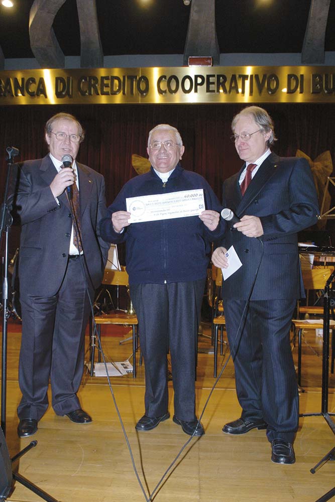 Sabato 22 dicembre, nella la Sala Don Besana della nostra sede di Busto Garolfo, è salita sul palco la corale “Santa Cecilia”, storica banda del territorio. Una serata carica di importanza per la città, e in particolare per i tanti bimbi che frequentano l’asilo nido “Figini Naymiller” di via XXV Aprile. 39La Bcc di Busto Garolfo e Buguggiate ha infatti voluto dare un forte contributo alla realizzazione dei lavori di ristrutturazione della struttura, e ha scelto questa serata per consegnare ufficialmente l’assegno (60mila euro) al parroco don Piero Roveda. «Quest’anno, come parrocchia -ha spiegato il sacerdotte-, abbiamo scelto di rinunciare alla donazione della Bcc per devolverla a favore dell’asilo nido. Ringraziamo la banca per questo importante contributo, che ci consentirà di realizzare interventi di cui la scuola non poteva più fare a meno, ossia il nuovo impianto di riscaldamento e la rimozione di eternit dal tetto». A consegnare l’assegno il presidente Lidio Clementi e Alberto Morandi, presidente del Progetto Soci e Territorio.40 Presente anche il vicepresidente Roberto Scazzosi, che ha consegnato al parroco un piccolo regalo. «I giovani sono il nostro futuro -ha detto Lidio Clementi-. Sappiamo bene quanto sia importante per le famiglie avere a disposizione delle strutture a cui poter affidare i più piccoli. Era giusto sovvenzionare questo intervento, senza che il suo costo gravasse sulle rette pagate dai genitori». «Siamo differenti dalle altre banche -conclude Alberto Morandi- e le tante azioni che facciamo sul territorio lo dimostrano. Ogni anno, la nostra attenzione alla parrocchia di Busto Garolfo significa sostenere il lavoro di chi, quotidianamente, si impegna in favore del prossimo».