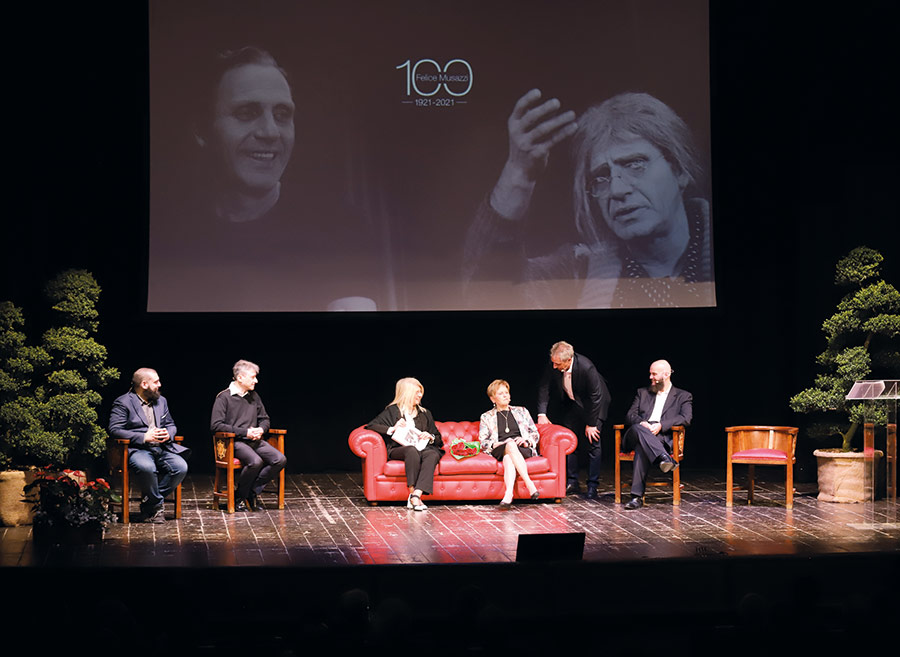 La presentazione dell’opera è avvenuta con un evento in presenza, lunedì 10 maggio, al teatro Talisio Tirinnanzi di Legnano, condotto da Max Pisu e tenuto a battesimo da una madrina d’eccezione, Antonella Clerici, e che ha visto tanti ospiti -tra cui Enrico Barlocco, attuale produttore della compagnia de I Legnanesi e nipote di uno dei fondatori-, molti videomessaggi -di Enrico Dalceri, cioè l’attuale Mabilia, di Gigi Campisi, che fino ad un paio di anni fa interpretava Giovanni, e di Antonio Provasio, che ha ereditato sulla scena i panni della Teresa- e collegamenti in streaming, finanche dall’università John Carroll dell’Ohio, a sottolineare l’incredibile percorso che ha segnato la vita di Felice Musazzi. O, meglio, come ha detto Roberto Scazzosi nel suo saluto a nome della Bcc di Busto Garolfo e Buguggiate: «la dimensione glocale dell’opera di Musazzi. Partendo dai cortili, da una vita molto quotidiana e utilizzando il linguaggio caratteristico, il dialetto, è arrivato a raccontare il senso universale della vita, spesso facendoci sorridere. Quello che i Legnanesi hanno messo in scena fin dal primo dopoguerra è stata la vita nella sua complessità e nella sua interezza; non sempre felice, non sempre facile, ma capace di far crescere tutti secondo valori autentici e universali. In questo contesto, la dimensione locale non è stato un limite, ma elemento di forza. Il nome di Felice Musazzi ha ben presto superato i confini di Legnano e quelli della Lombardia. Perché quello che dal palco raccontava lo si poteva ritrovare, con sfumature più o meno accentuate, anche in altri cortili. E anche se la fama di Musazzi è arrivata lontano, ci ha permesso di conservare memoria viva di un certo modo di vivere.